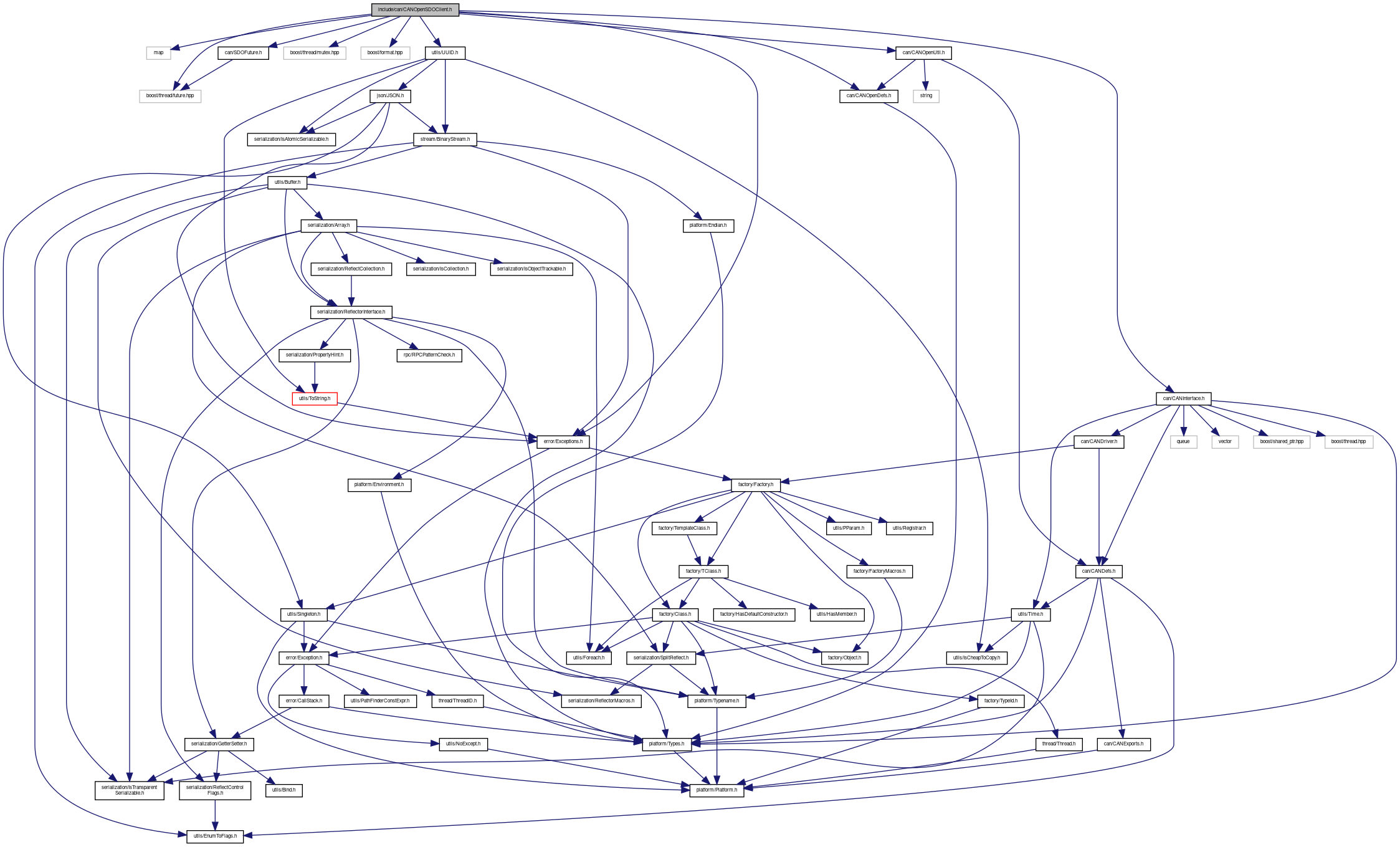 #include <map>#include <boost/thread/future.hpp>#include <boost/thread/mutex.hpp>#include <boost/format.hpp>#include <error/Exceptions.h>#include <utils/UUID.h>#include <can/CANInterface.h>#include <can/CANOpenDefs.h>#include <can/CANOpenUtil.h>#include <can/SDOFuture.h>